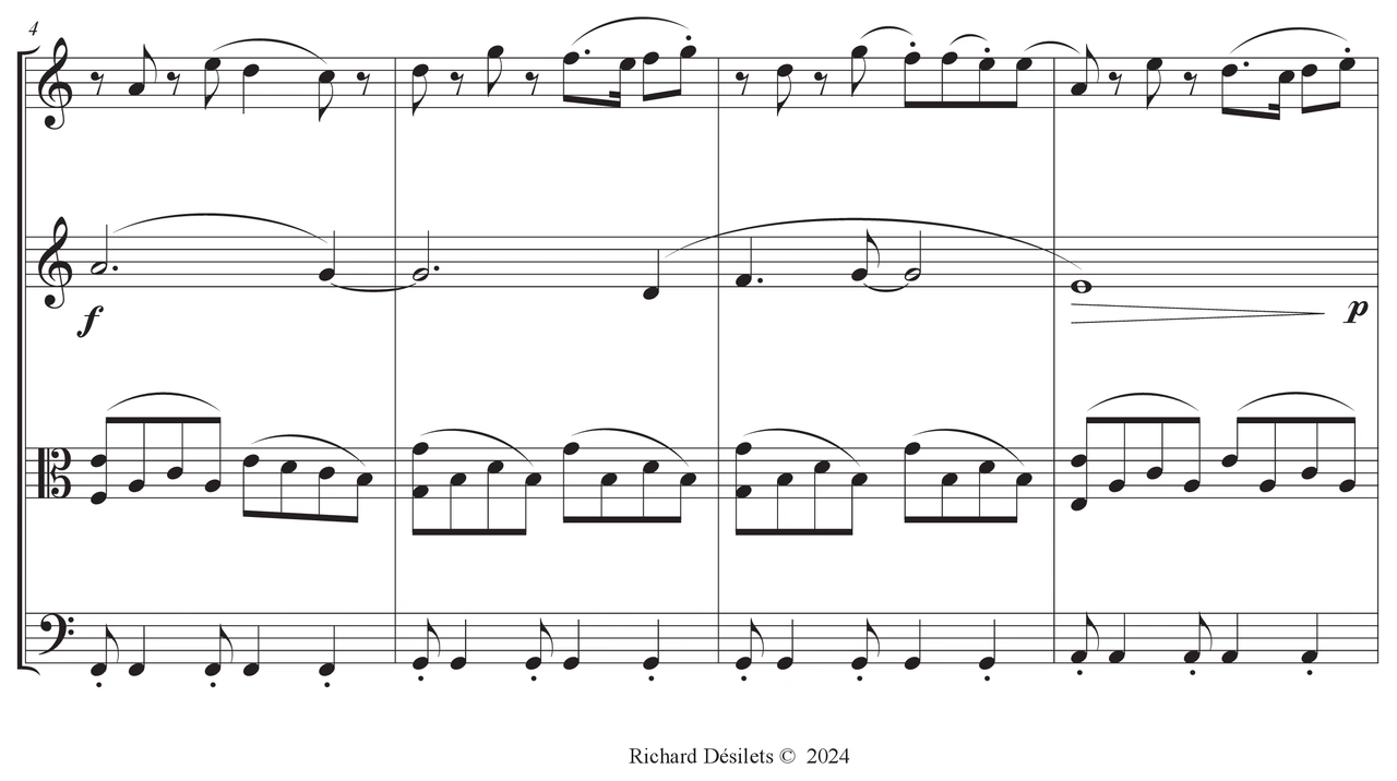 This open work is conceived as a kind of «menu à la carte» or as a bank of quartets where musicians are free to play from one to several quartets according to their choice during live performances.