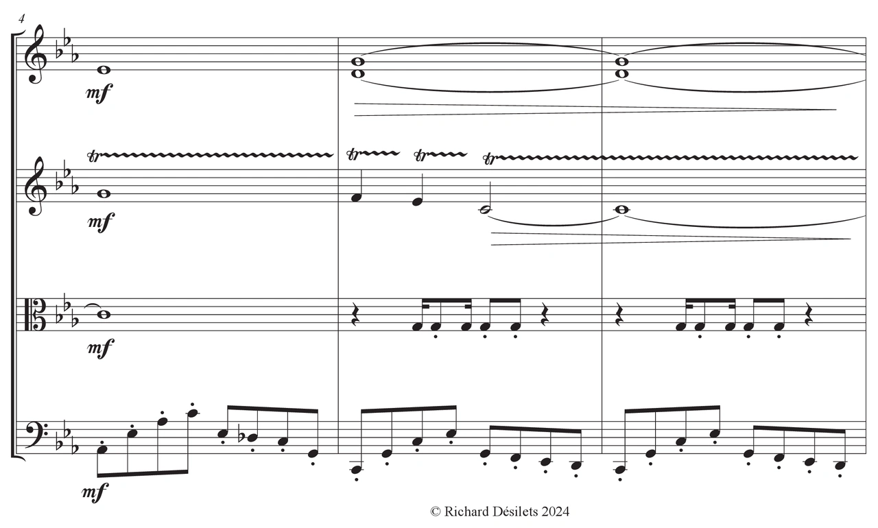 This open work is conceived as a kind of «menu à la carte» or as a bank of quartets where musicians are free to play from one to several quartets according to their choice during live performances.