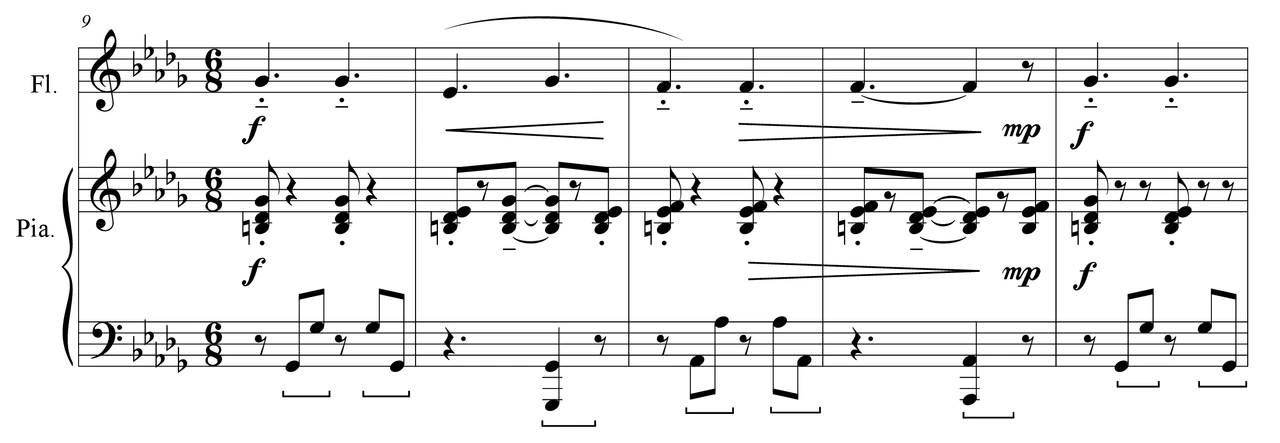 Résonance intuitive is the second movement of a piece calls Les Résonances in 3 movements for flute or other instruments and piano.