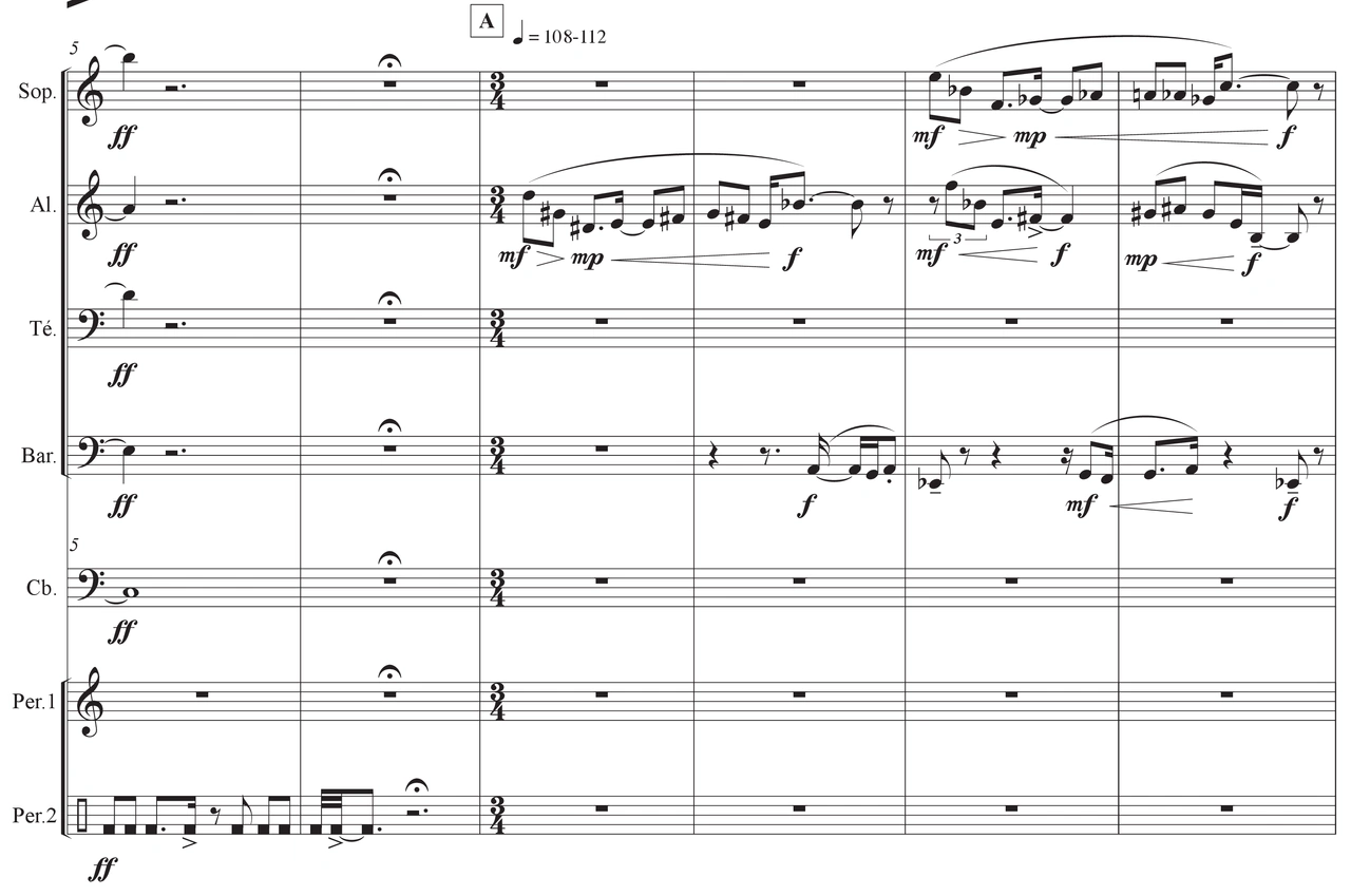 Quatuor de Saxophones de Montréal avec le contrebassiste Jacques Beaudoin et les percussionnistes Robert M. Leroux et Jean-Guy Plante, sous la direction de Walter Boudreau