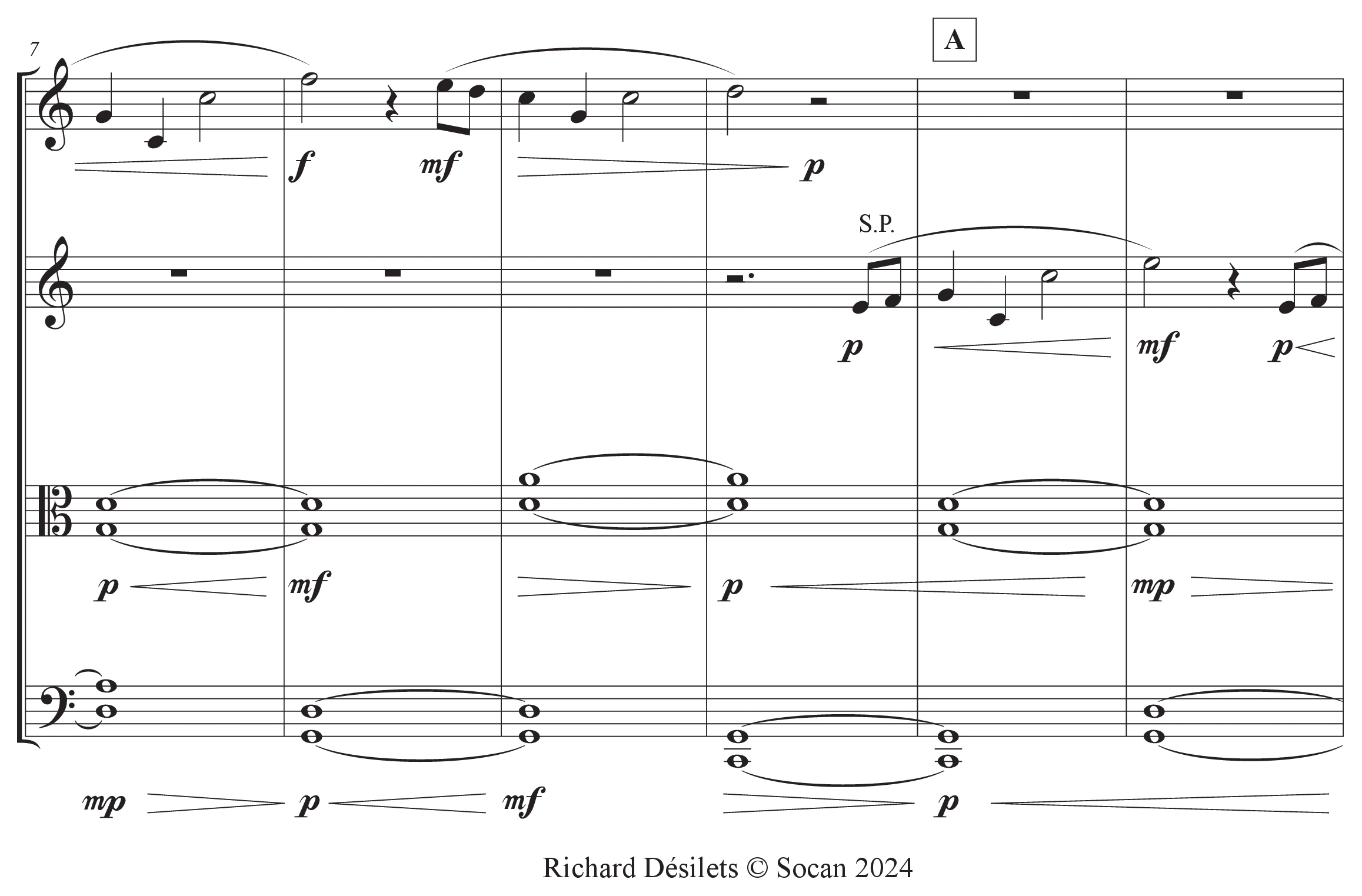 This open work is conceived as a kind of «menu à la carte» or as a bank of quartets where musicians are free to play from one to several quartets according to their choice during live performances.