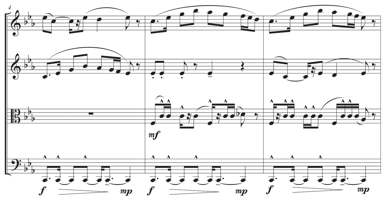 This open work is conceived as a kind of «menu à la carte» or as a bank of quartets where musicians are free to play from one to several quartets according to their choice during live performances.