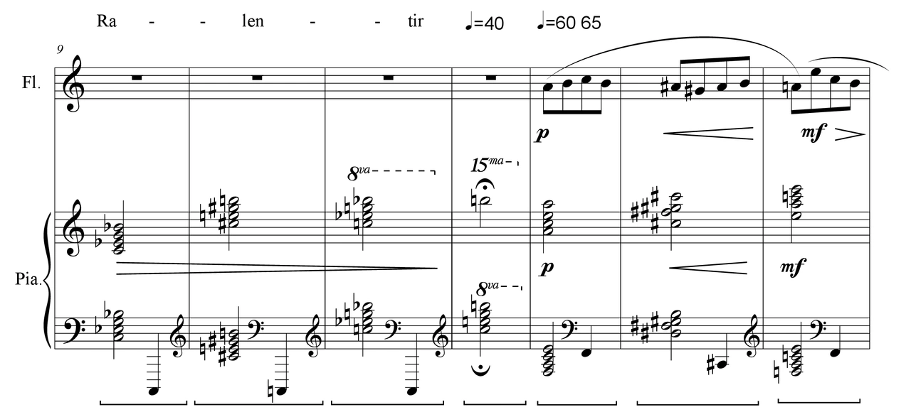 Résonance intime is the third movement of a piece calls Les Résonances in 3 movements for flute or other instruments and piano.