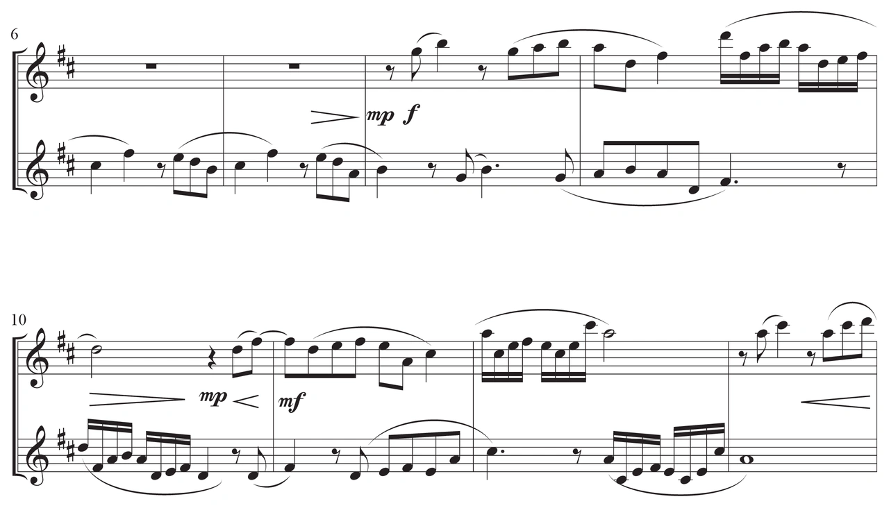 Dyade bleue is the third movement of a piece calls Les Dyades in 3 movements for flute and violin or other instruments.