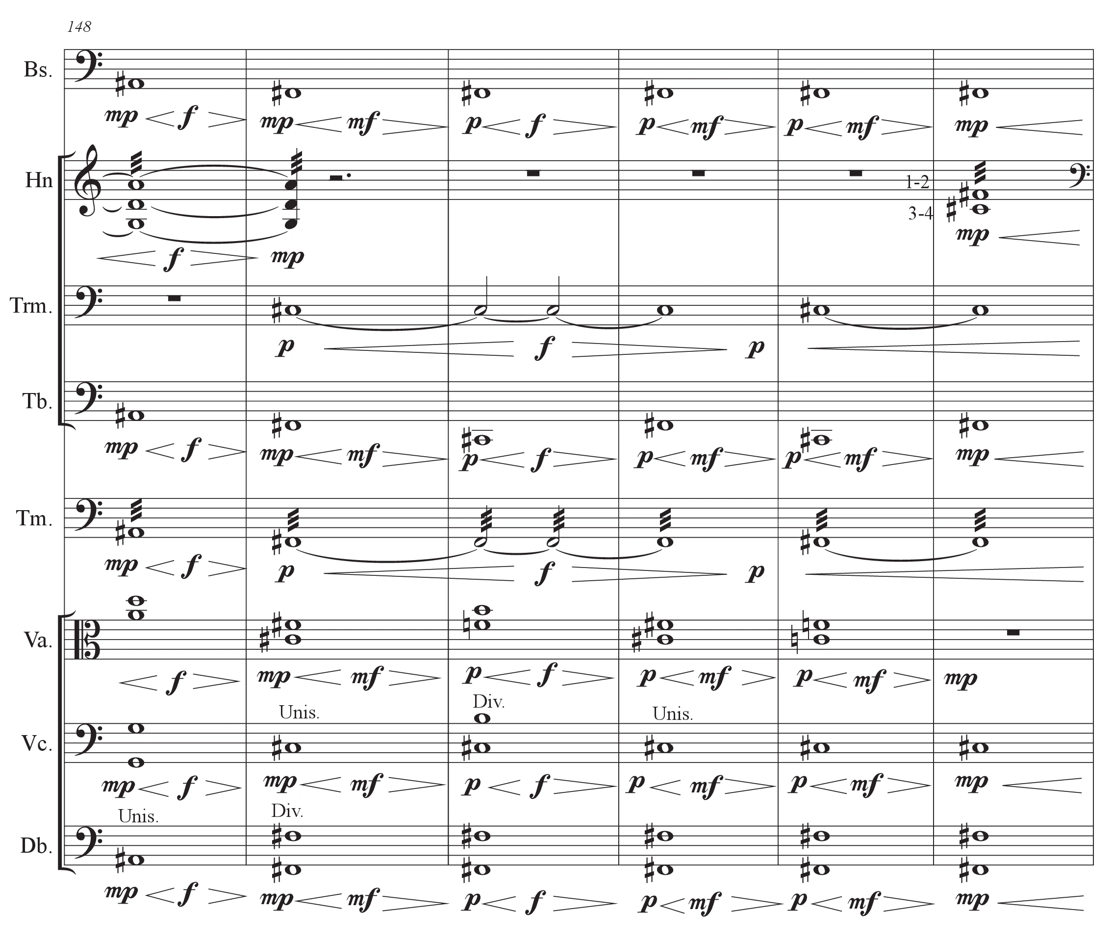 To do this, I used ascending and descending chromatic patterns, a technique often used by this composer. Subsequently, I transformed this film music into a composition for a large orchestra.