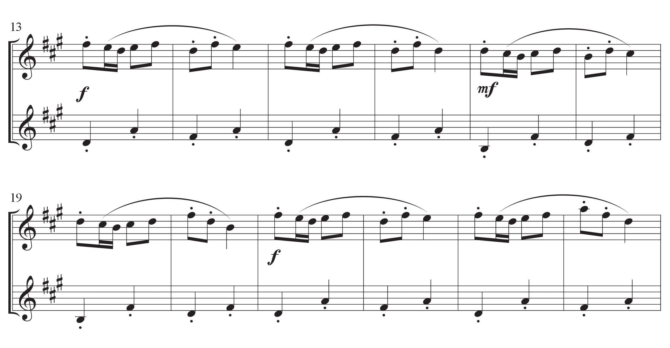 Dyade rouge is the first movement of a piece calls Les Dyades in 3 movements for flute and violin or other instruments.