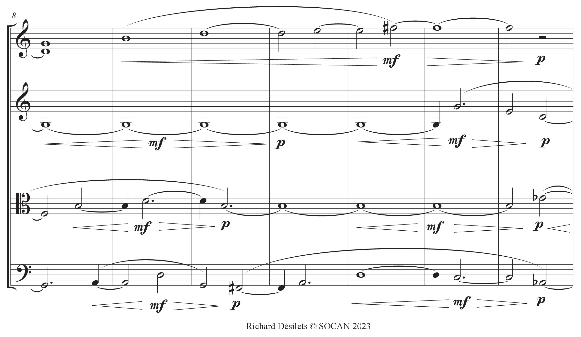 This open work is conceived as a kind of «menu à la carte» or as a bank of quartets where musicians are free to play from one to several quartets according to their choice during live performances.