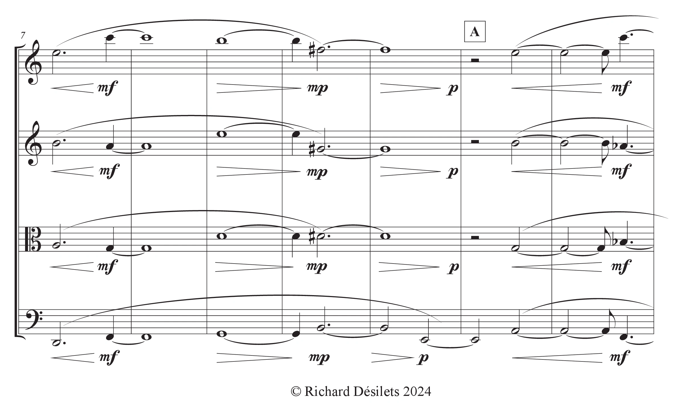 This open work is conceived as a kind of «menu à la carte» or as a bank of quartets where musicians are free to play from one to several quartets according to their choice during live performances.