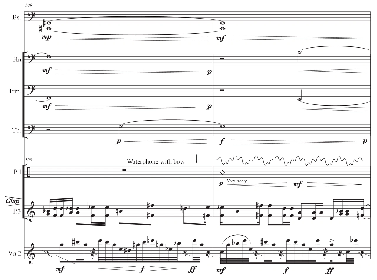 descendants, une technique souvent utilisée par ce compositeur. Par la suite, j’ai transformé cette musique de film en une composition pour grand orchestre.